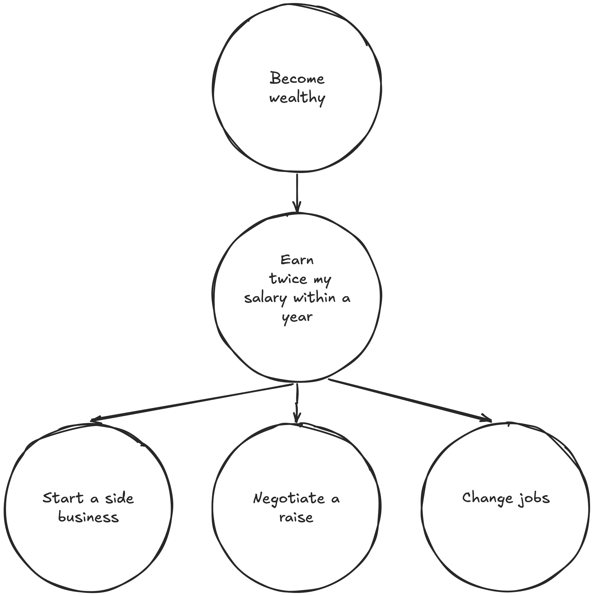 Of course, your goal might initially be abstract like "I want to become wealthy," but you can refine it by asking: