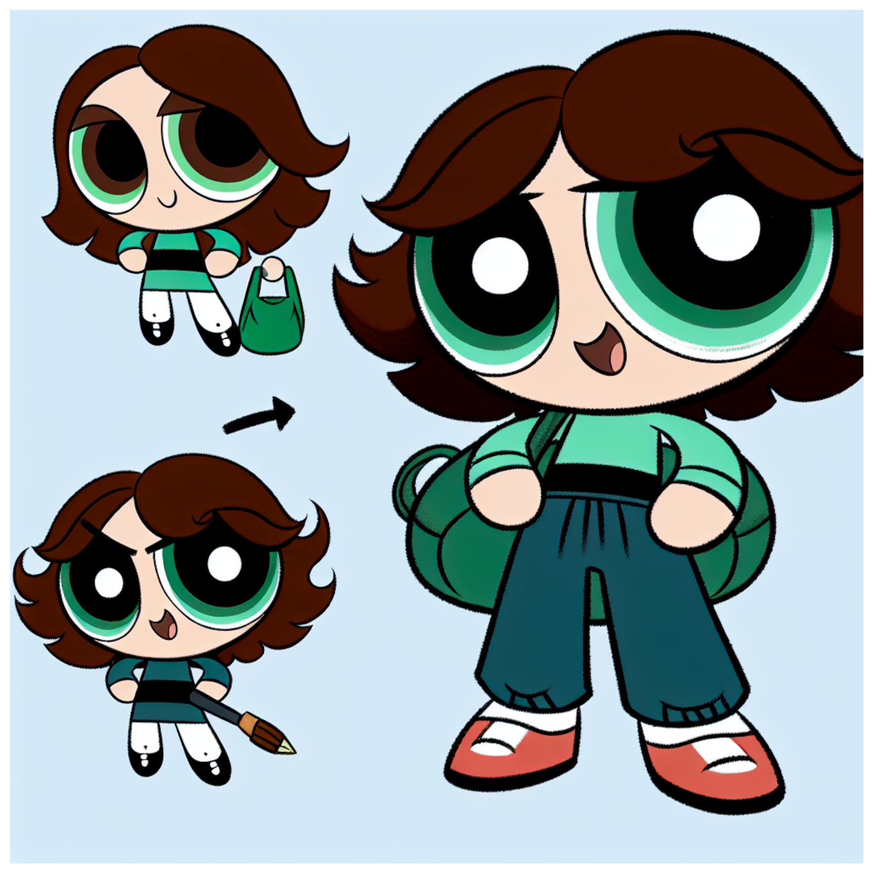 After testing, this is the best method! ChatGPT can focus solely on your character, producing the best effects that most closely resemble you as a Powerpuff Girls character