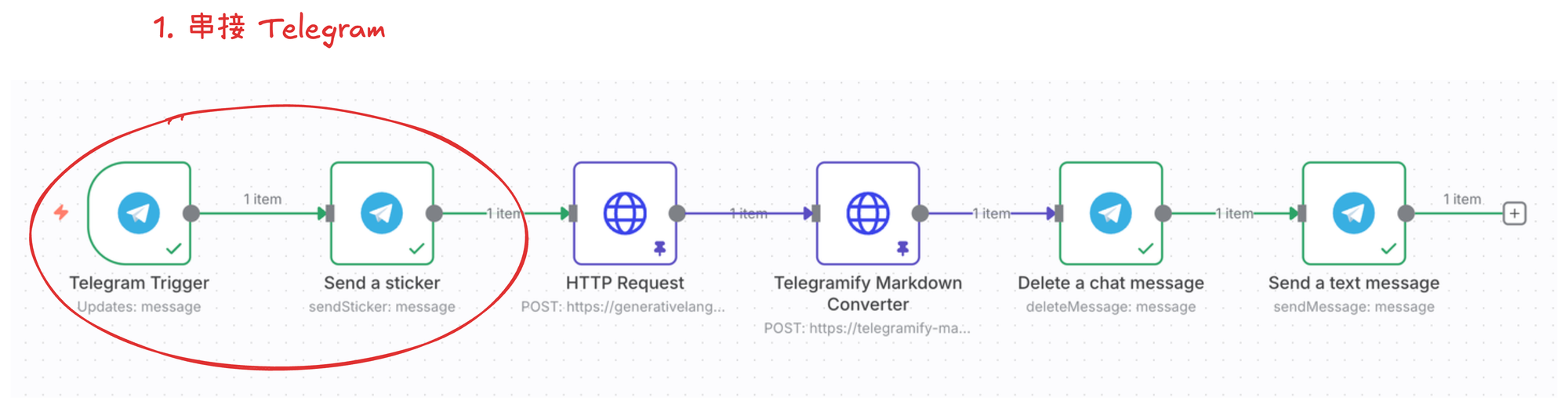 新增 Telegram 節點:接收訊息、回傳貼圖