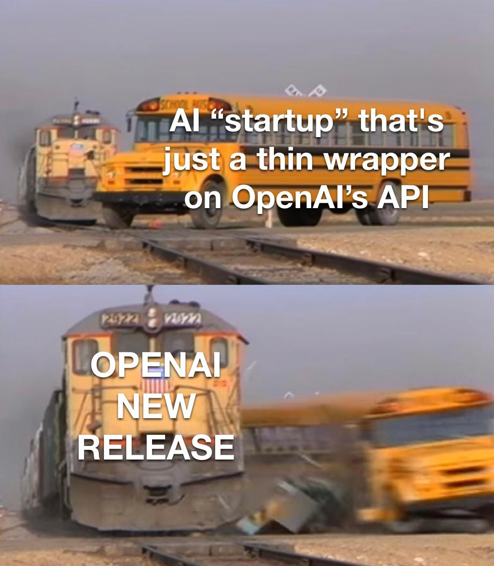比如 GPT-4o 的图像能力,直接干翻了之前很多创业公司的产品,他们花了那么多时间、人力、投资人的钱去调优的算法、工作流、模型,直接被一次大模型的更新就取代了。
