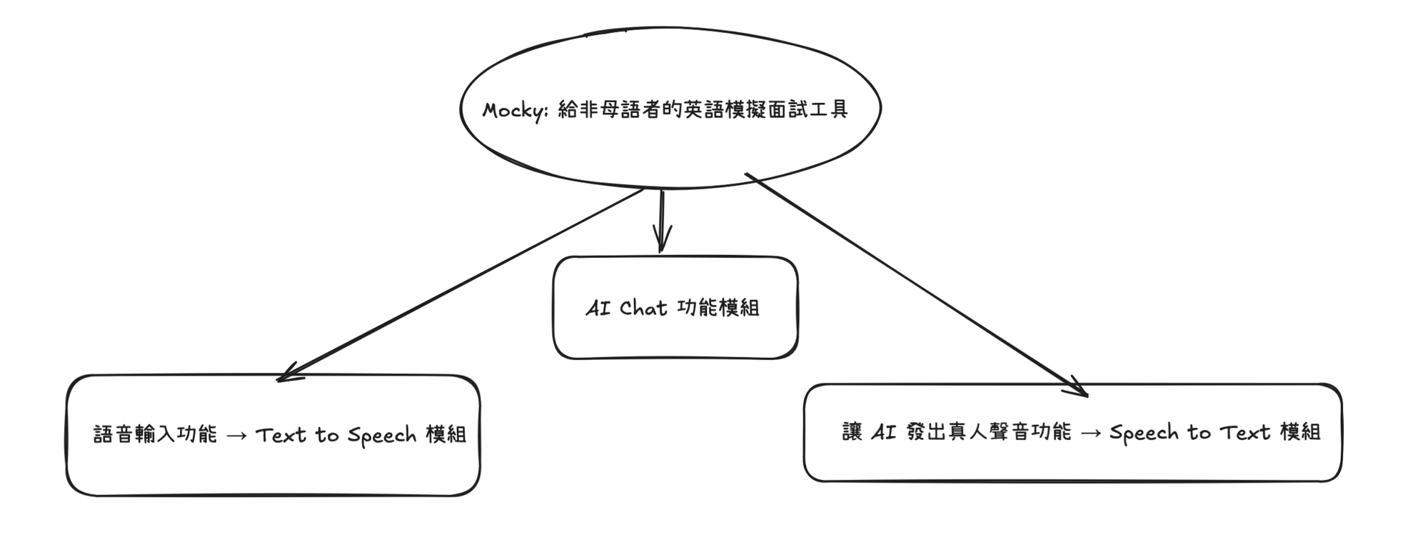 以我開發中的英文模擬面試 app Mocky 為例,模組化拆分包括: