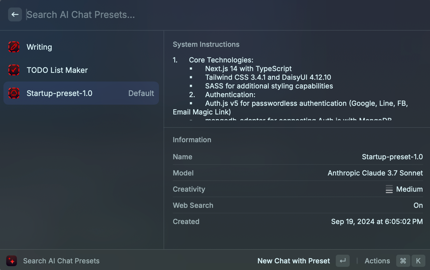 - 使用預設提示:我在 Raycast 設定了專用的 code 相關 preset(有興趣的可以寄信給我拿完整 system prompt)